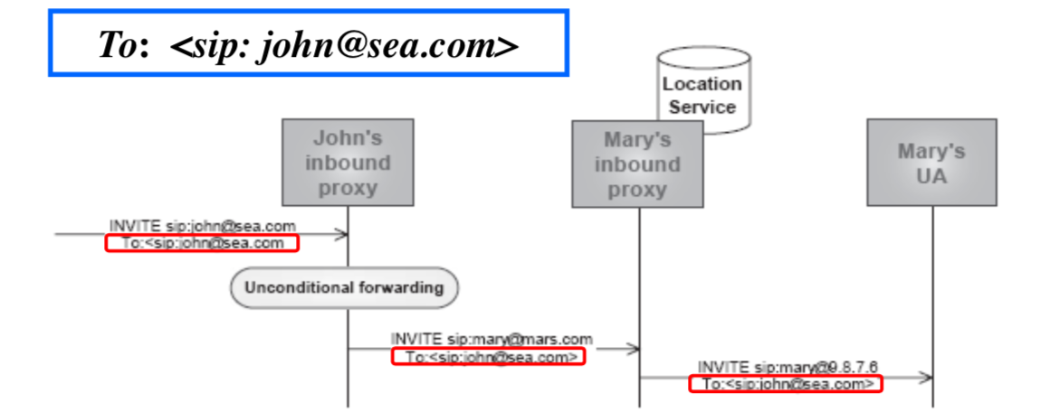 - 다른 점은, proxy server를 식별하기 위한 SIP URI 또는 FQDN을 사용한다는 점이다.
