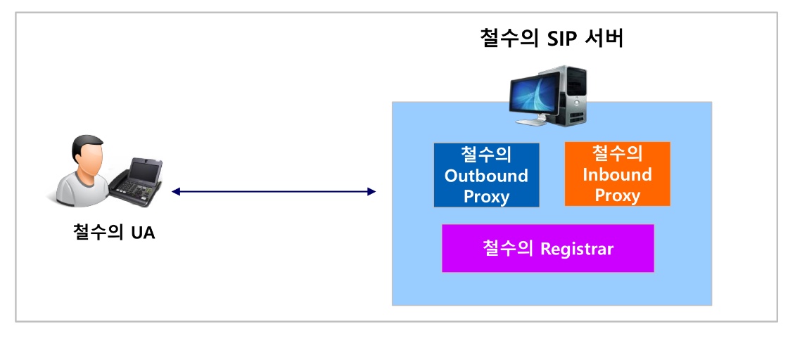 이와 같이 inbound proxy, outbound proxy, registrar가 하나의 SIP 서버 안에 마련될 수도 있다.