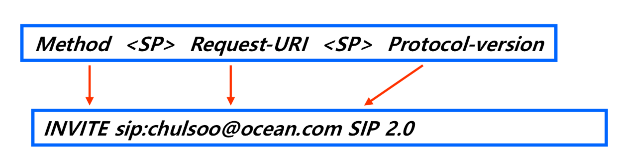 Method의 자리엔 INVITE나 REGISTER 등의 메소드 종류가 옴
