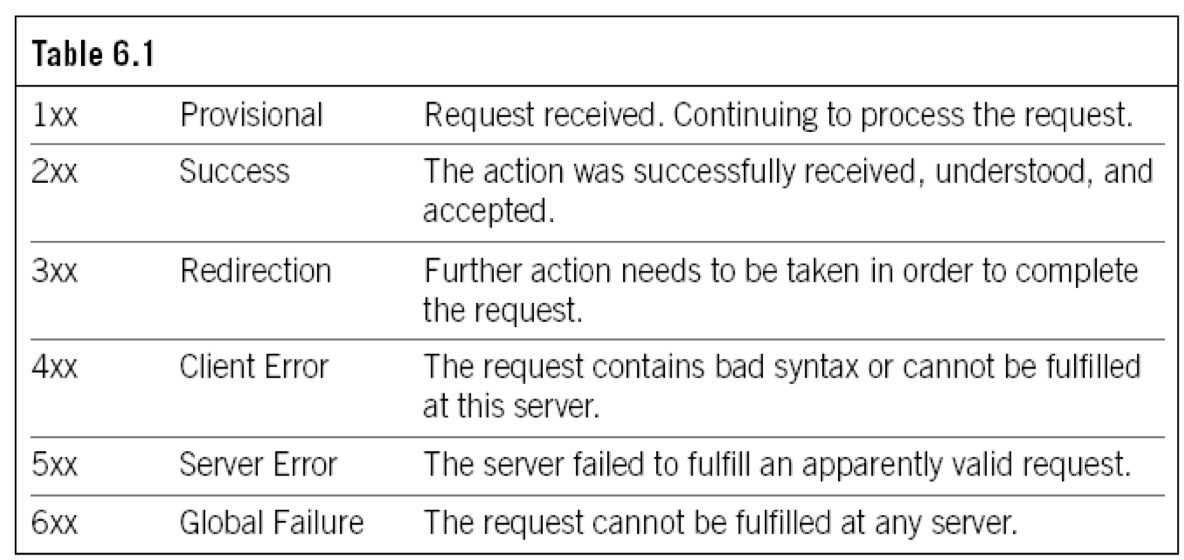 - 이 메세지는 임시(provisional; 먼저 보여주는) 메세지로서 일단 먼저 전송되고 난 후, final message들(2xx~6xx)이 전송된다.