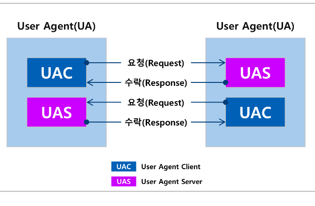 UAC; SIP 요청 메세지를 생성하고,해당 요청 메세지에 대한 응답 매세지를 받는다.