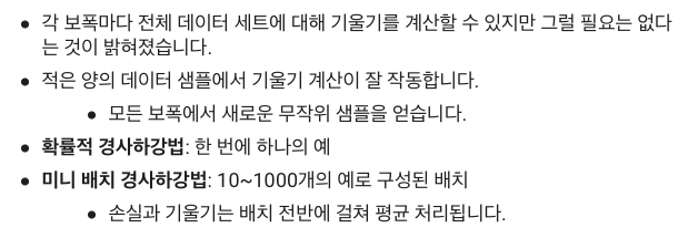 모든 데이터셋에 대해 학습을 진행하여 최소값을 찾는 것은 비효율적이다. 몇 개의 데이터 샘플만으로 학습을 진행하여 최솟값을 찾는 것도 괜찮다는 것이 밝혀졌다. 그래서 mini batch 방식의 GD를 사용하면 된다.