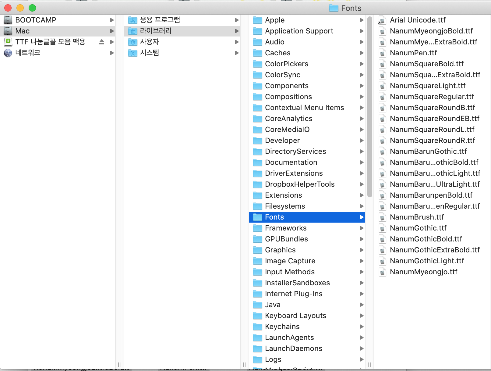 했는데 안 들어가지네; 그래서 Fonts 폴더에 바로 넣어줬다.