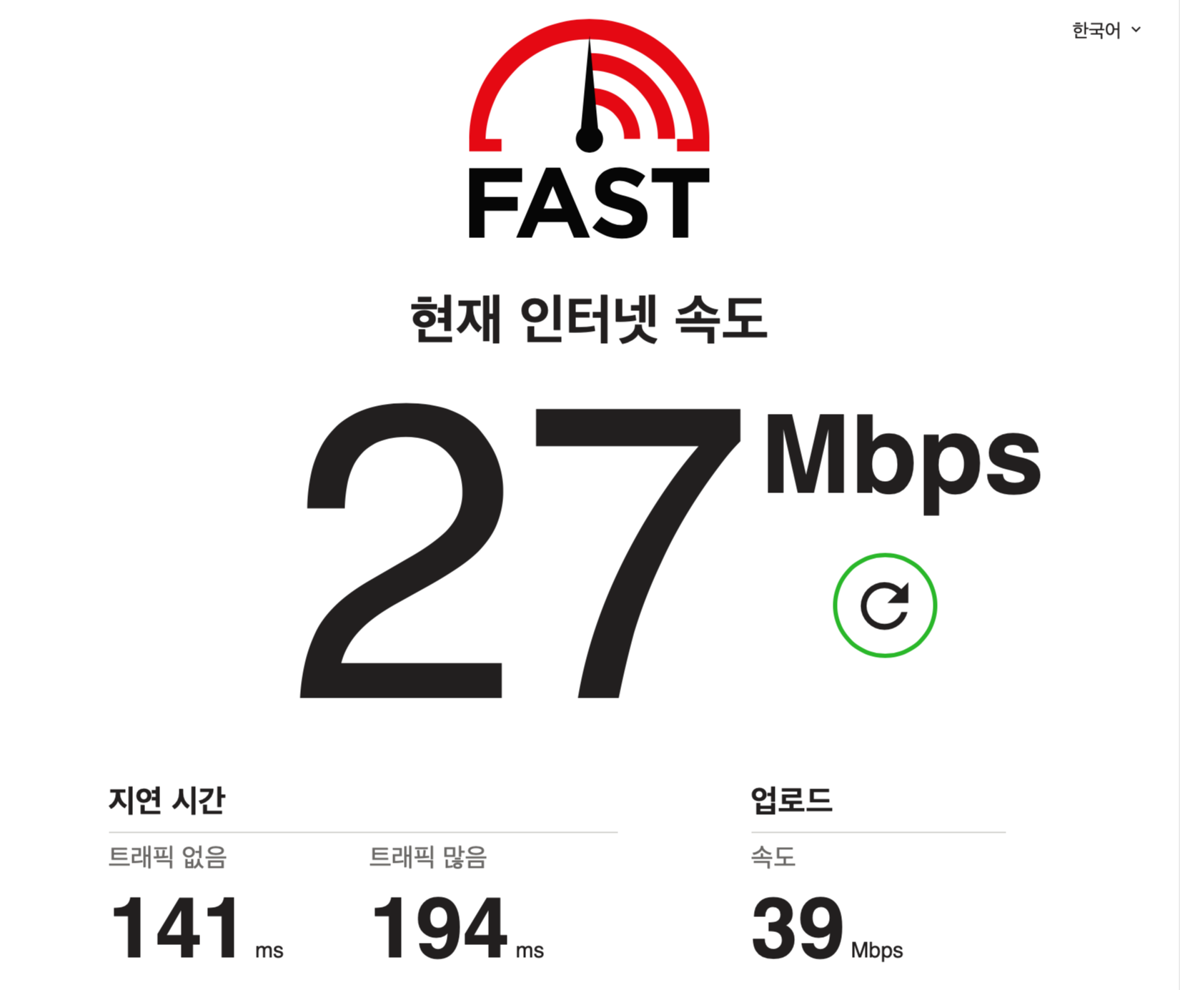 VPN 사용하지 않을 시 인터넷 속도와 지연율(LGU+)